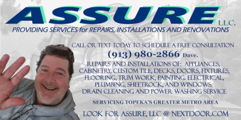 ASSURE, LLC is here for your home projects working in Topeka's greater metropolitan area, any project big or small. Call or Text for an Appointment Today at (913) 980-2866